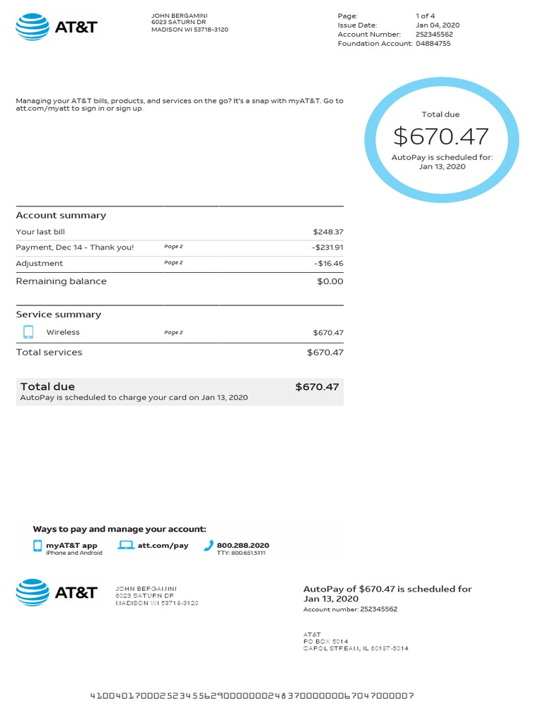 Att Final Bill At T Mobility Cheque